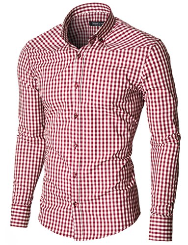 Das Baumwolle Gewebe macht dieses Slim Fit Kariert Hemden fur Manner bequem, wenn Sie tragen; Leicht zu bugeln; Trockenreinigung, Waschmaschine oder Kaltwasser Handwasche werden empfohlen