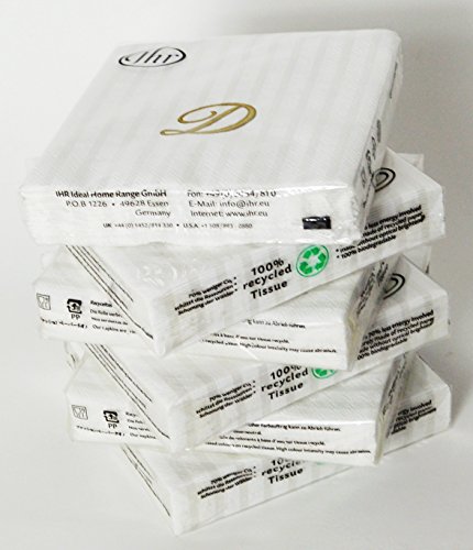 - 6 Packages of tone on tone ivory striped napkins with gold monogram D, total 120 napkins