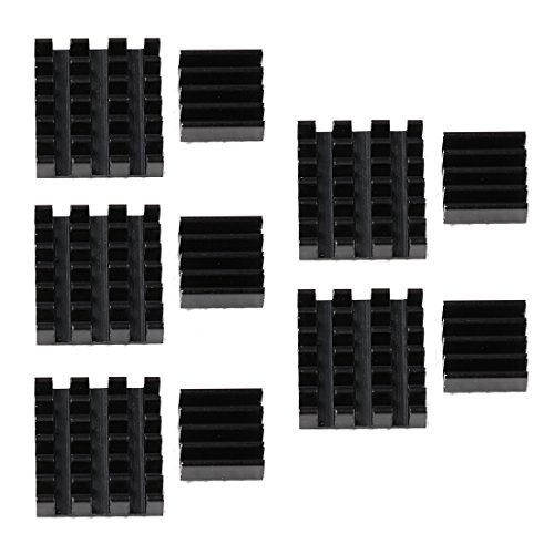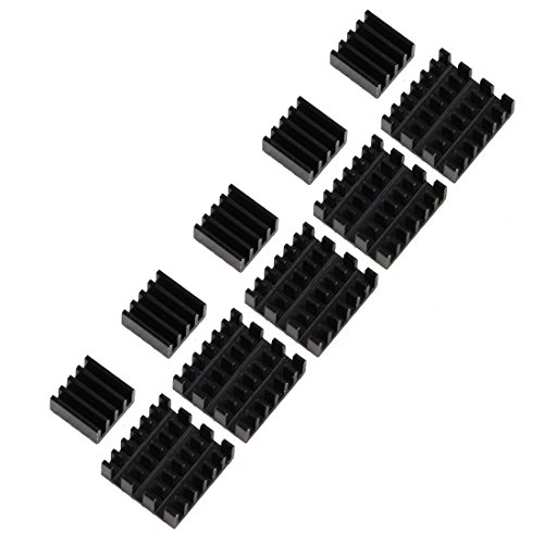 Modpion 10Pcs Black Aluminum Heatsink Cooler Cooling kit for Raspberry Pi 3,Pi 2,Pi Model B+