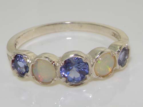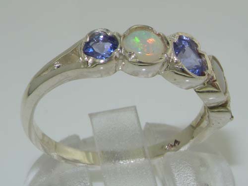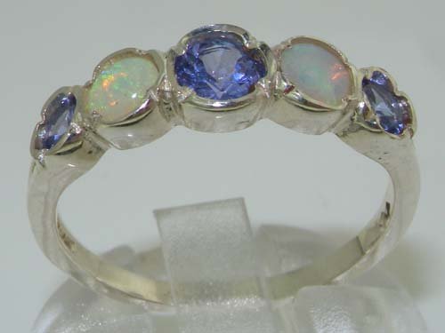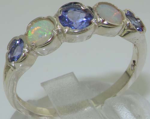 -. Feature : Made in England / Natural Tanzanite & Opal / Real Solid Sterling Silver / Sizes 4 to 12 Available including quarter and half sizes / Supplied in a FREE Luxury Ring Box