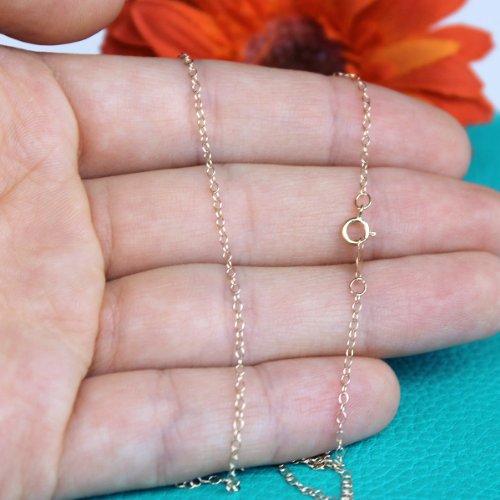 -. Feature : This necklace is made of solid 14k gold (not plated or filled) and stamped "14k". / This classic necklace is a great choice for wearing with your favorite pendant. / Chain is 1.5mm thick, comes in: 13, 15, 16, 18, 20, 22 inches long.