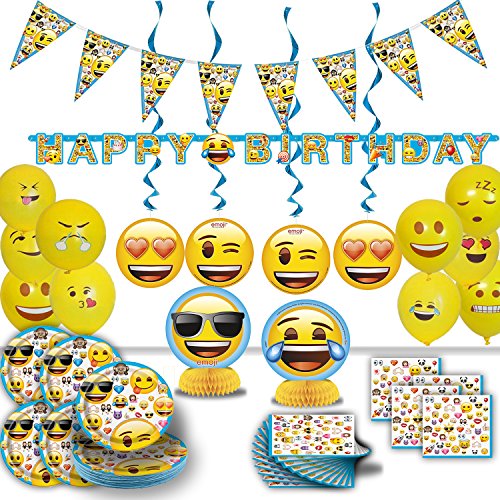 -. Title : Emoji Birthday Party - 16 Guest- Supplies, Decorations, Balloons - Plates, Napkins, Happy Birthday Banner, Pennant String, Hanging Swirls, Emoji Balloons, Table Centerpieces. Emoji Tableware and Deco