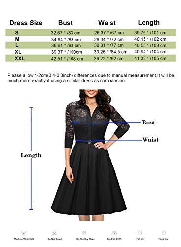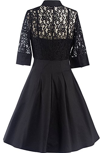 Title : OWIN Women's Vintage 1950s Style 3/4 Sleeve Black Lace Flare A-line Dress