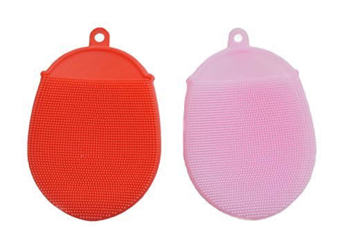 Silicone Multipurpose Antibacterial Sponges Mildew Free & BPA Free Nonstick Oil Design FDA Approved (Red, Pink) Use For Cleaning, Scrubbing, and Stove Ovens in Kitchens. Bathrooms, Bedrooms, Jewelry.