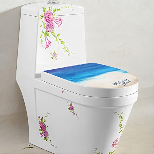 Boodecal Beach Toilet Lid Cover Stickers For Bathroom Seat Peel and Stick Decals 15x 12 Inches