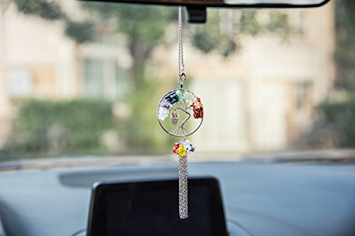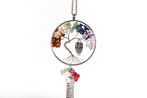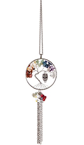 Tree of Life Pendant Car Charm Rear View Mirror Accessories, Boltz Sweater Chain Necklace Gemstone Chakra Jewelry Christmas Gift (Owl) (owl)