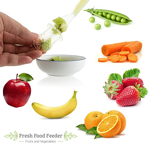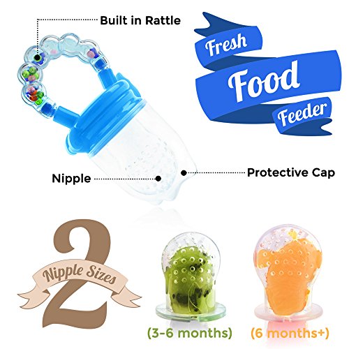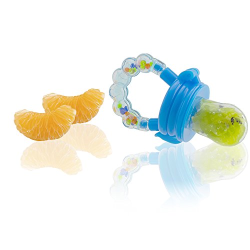 -. Feature : HIGH QUALITY FRESH FOOD FEEDER designed to introduce solid foods to your babies. Similar in appearance to a pacifier, this fruit feeder is designed to open so you are able to place food into the nipple. A safe way to introduce fresh food to your baby / 100% SAFE FOOD GRADE SILICONE nipples, non-toxic, hypoallergenic, BPA free. Newly designed latch that reduces the risk of snags, and pokes / SAFE, DEPENDABLE TEETHER: Allows your child to not only try solid foods, but also to sooth during teething. Frozen fruits, or ice chips packed into the soft silicone feeder provides a safe way for your baby to teeth. Fun rattle design keeps baby interested / EASY TO CLEAN with soap and water, and the silicone nipple is boil safe for disinfection. Product completely breaks down so you are able to fully, and properly clean