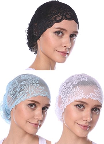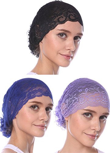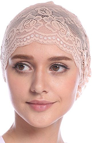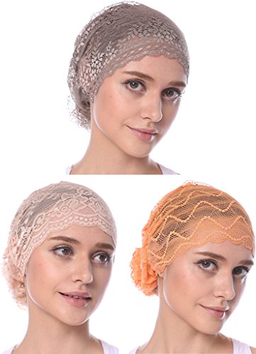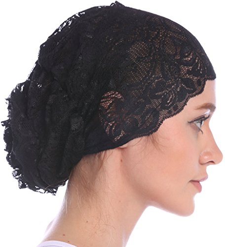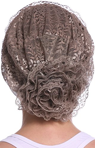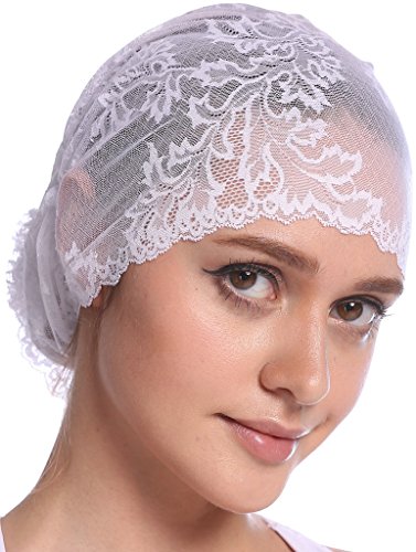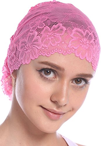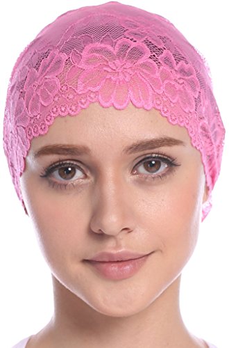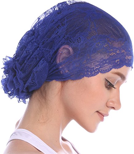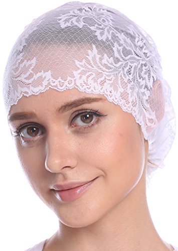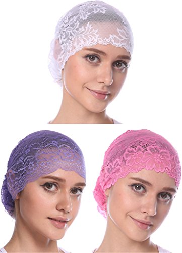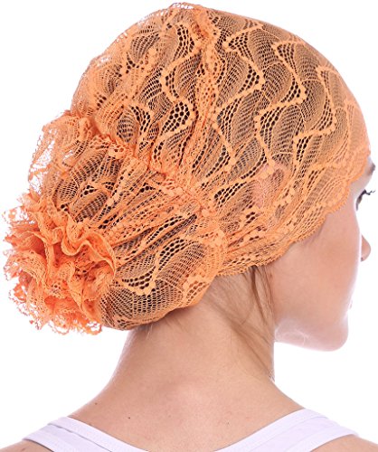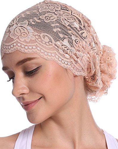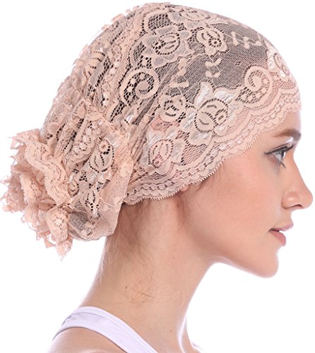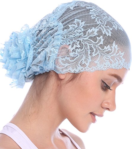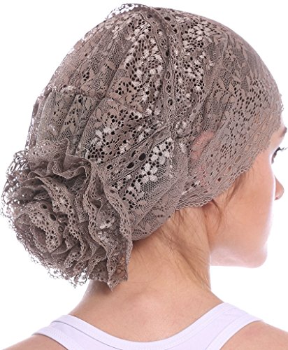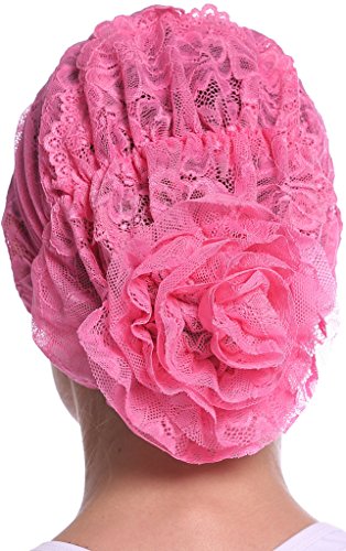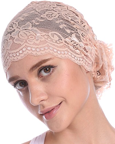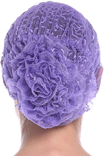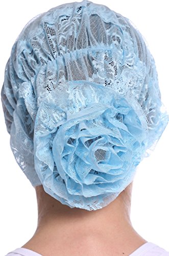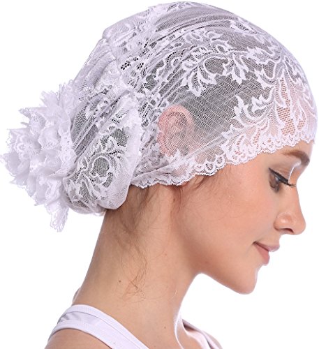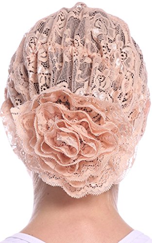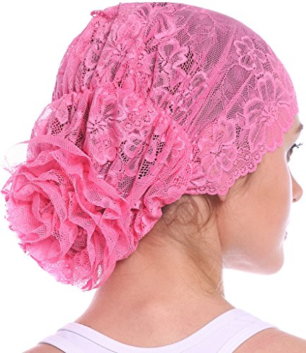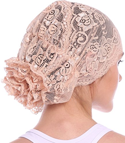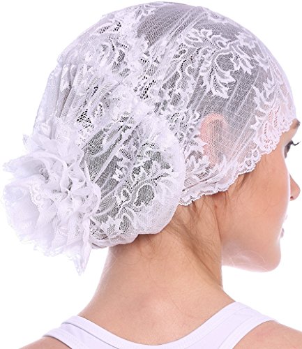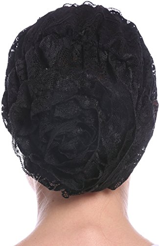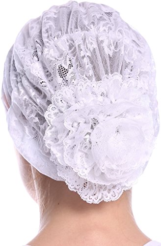 | YI HENG MEI Women's Elegant Strench Sheer Lace Pleated Flower Muslim Cap Cancer Chemo Cap in 9 ... |