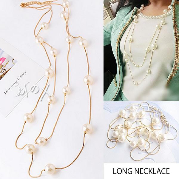 | 華やかパールデザイン ダブルロングネックレス ゴールドカラー 結婚式 二次会 【アクセ レディース 黒 ブラック 黒い服 ロンデルブラック フォーマル ネックレス necklace gold ドレス セレカジ 入園式 入学式 】 |