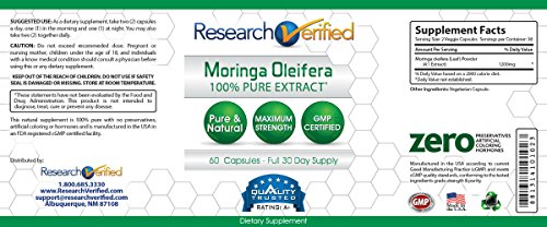 365 DAY - MONEY BACK GUARANTEE: Research Verified is so confident that this product will work for you that they offer a no-questions asked money back guarantee for up to a full year after purchase of the product. Research Verified also offers top of the line customer support and are glad to help with any questions that you may have. Try Research Verified Moringa Oleifera Risk-Free Today!