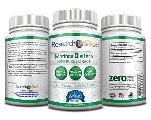 Research Verified Moringa Oleifera - The Best Moringa Oleifera Supplement on market - with 100% Pure Extract for the Ultimate Moringa Oleifera Quality....