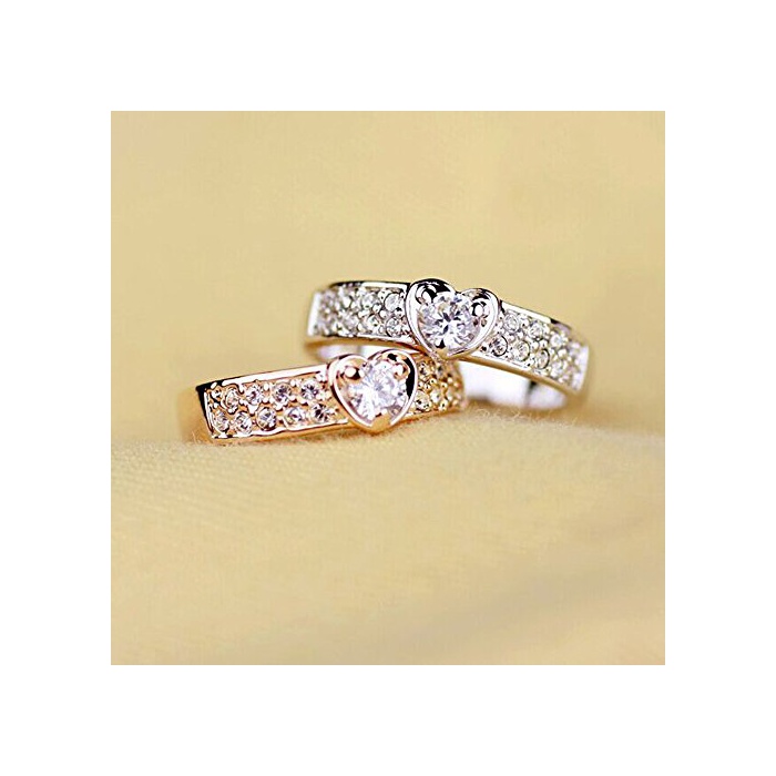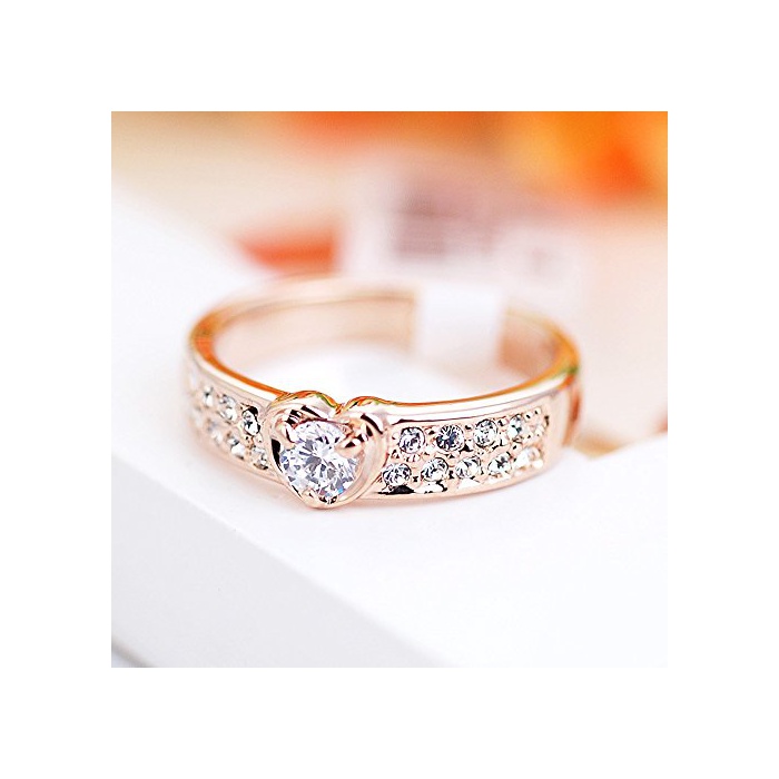K.L.Y 반지 레이디스 하트 링 다이아몬드CZ 18금RGP 쥬얼리 패션 악세사리 레이디스 링 고품질 링 반짝반짝 레이디스 귀여운 반지 2 색전개 (핑크 골드) 기프트 포장