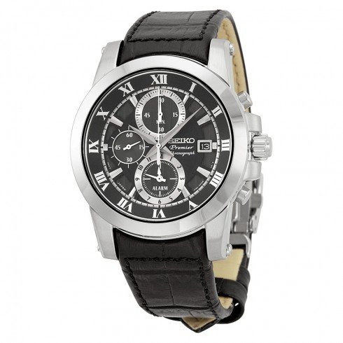 세이코import 세이코 Seiko Premier Chronograph Black Dial Stainless Steel Black Leather Mens Watch SNAF31P2 남성 맨즈 팔