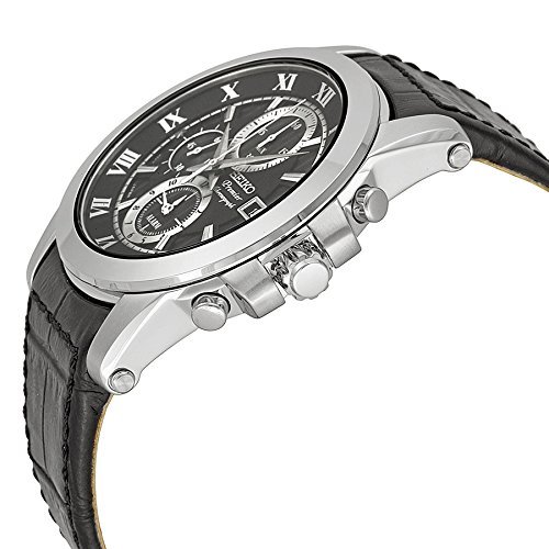 상품명: 세이코 Seiko Premier Chronograph Black Dial Stainless Steel Black Leather Mens Watch SNAF31P2 남성 맨즈 팔