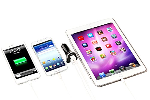 -. Feature : Universal 3 Port USB Car Charger, can simultaneously charges any 3 tablet or smartphone devices at full speed with 2 high-speed 2.1A USB ports and 1 high-speed 1A USB port. Just plug this Cigarette Charger into your car's, RV's or truck's cigarette lighter and connect it to your devices. And is compatible with all standard cigarette lighter sockets in every car, RV or truck. / Intelligent technology equipped on two 2.1A ports to identify each attached device and provide the highest recharging power that the devices can adapt to. / Output: DC 5V 5.2A; Compatible with iPhone, iPad, iPod, Samsung, HTC, MP3 players, digital cameras, and other digital devices. / A Soft Internal LED power indicator is lit to Built in dimmed LED indicator helps visualize the connection status and does not distract you while driving. / Certified by RoHS, CE & FCC; high-quality and safe, with protections against overheating, overcurrent, and overcharging. Charging will stop automatically when battery is full.