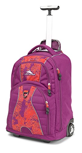 -. Binding : Sports -. Brand : High Sierra -. Department : unisex-adult -. Feature : Book bag with two inline-style wheels and telescoping handle allows you to cruise smoothly from place to place / Single-tube telescoping handle stows inside a protective zippered compartment / CUSHION ZONE padded computer sleeve holds laptops up to 17 inches / Measures 13.5-by-20.5-by-eight inches (W x H x D); constructed of Duralite Ripstop, Waffle Weave, and 600-denier Duralite materials / Includes limited five-year manufacturer's warranty / The handle system is not designed for 2-stage function. It is not meant to be used in the shorter position and only locks into place in the fully extended position. -. Label : High Sierra Sport Company -. Manufacturer : High Sierra Sport Company -. Model : 53991-0781 -. NumberOfItems : 1 -. PackageQuantity : 1 -. ProductGroup : Sports -. ProductTypeName : OUTDOOR_RECREATION_PRODUCT -. Publisher : High Sierra Sport Company -. Size : One Size -. SKU : 9976::WBP54065 -. Studio : High Sierra Sport Company -. Title : High Sierra Freewheel Wheeled Backpack