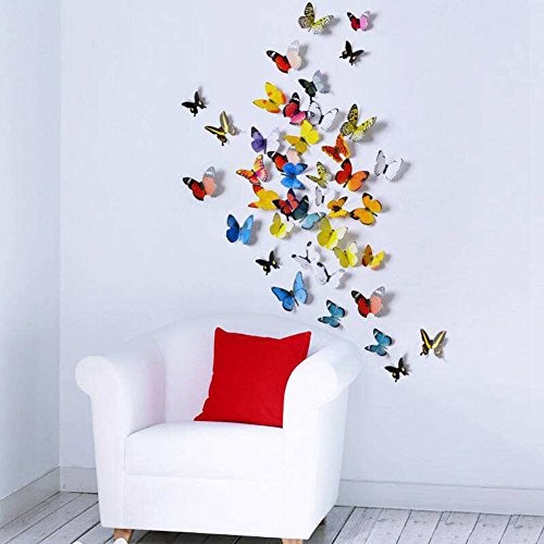 72 Pack 3D Colorful Butterfly Stickers DIY Art Decor Crafts For Nursery Classroom Kids Bedroom Bathroom Living Room Wall Home Decor Room Decorations - 6...