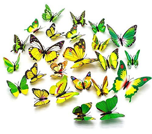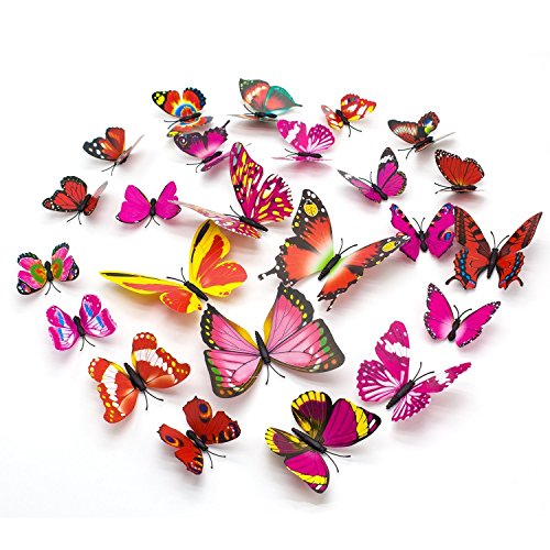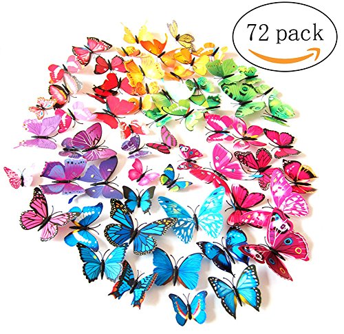 - 72 Pieces 3D Artificial butterfly stickers with 6 different bright colors (Blue, Yellow, Green,Purple, Rose, Pink),each color 12 pcs, looks like real butterfly