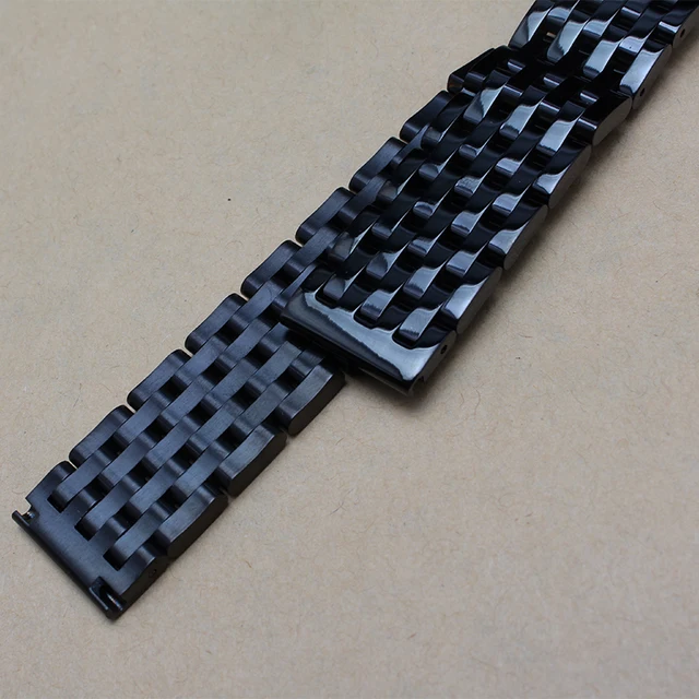 | [해외] 높은 품질 광택 블랙 솔리드 링크 스테인레스 스틸 시계 액세서리 팔찌 20 22 미리메터 교체 새로운 스트랩 금속 |