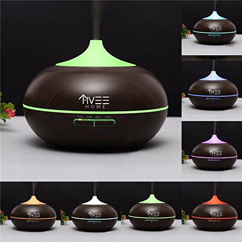 TiVee Home 300ml Aromatherapy Essential Oil Diffuser - Ultrasonic Cool Mist Humidifier - Dark Wood Grain