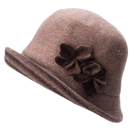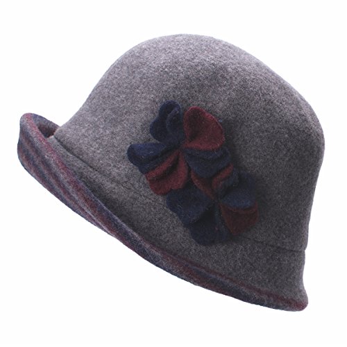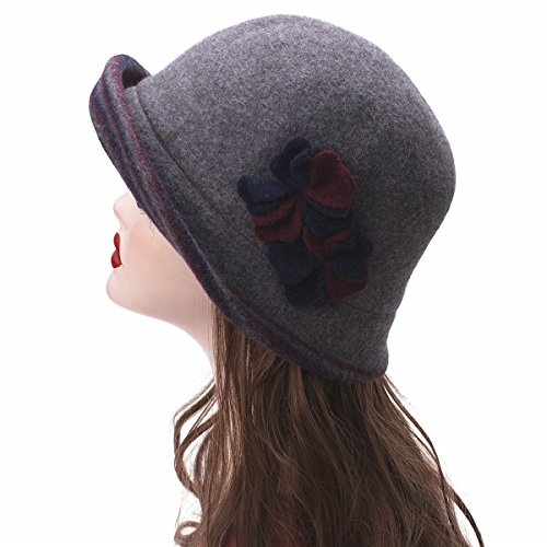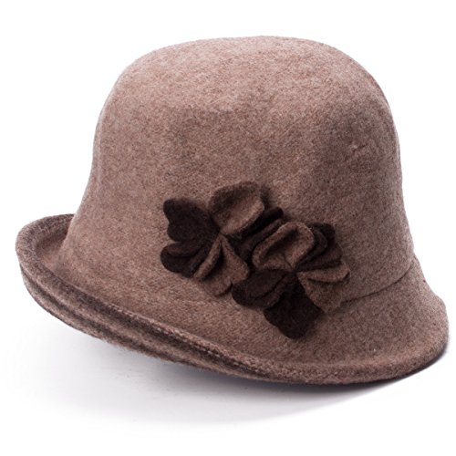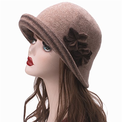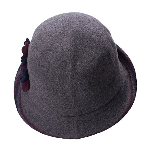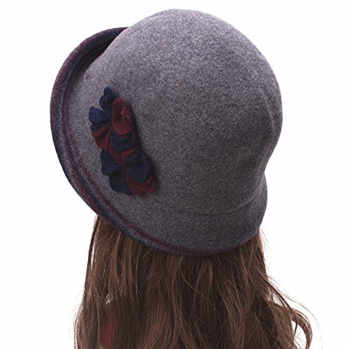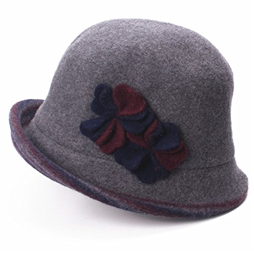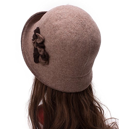 Lawliet Female Two-tone Floral Wool Cloche Bucket Hat Winter Church A476
