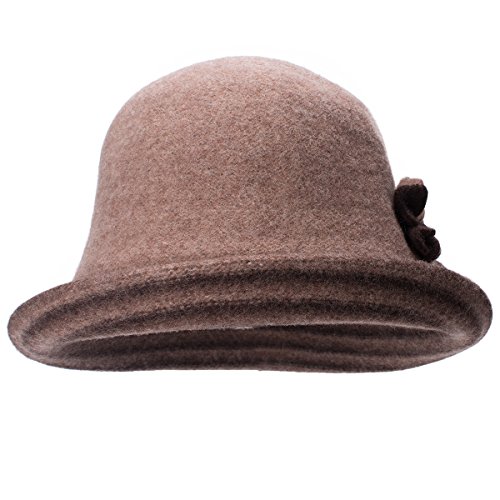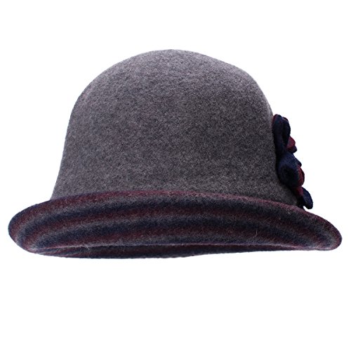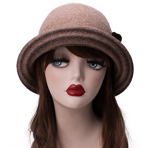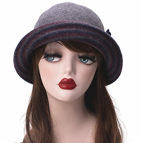 Product DescriptionWomen's wool blend cloche hat. Two-tone and upturn trim design.Unlined, interior band, interior tie string collapsible and easy carry.0