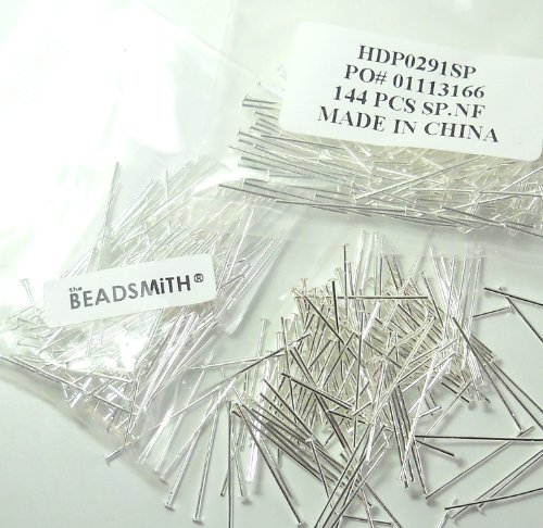 400 Head Pins .029dia X 1 Inch Silver Plating Over Brass Standard 21 Gauge Wire Beadsmith Headpins