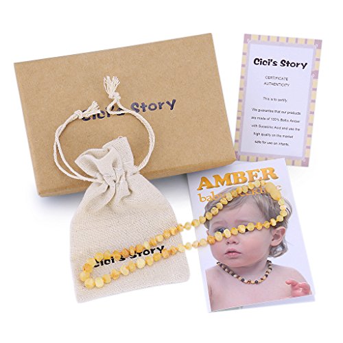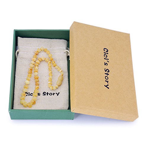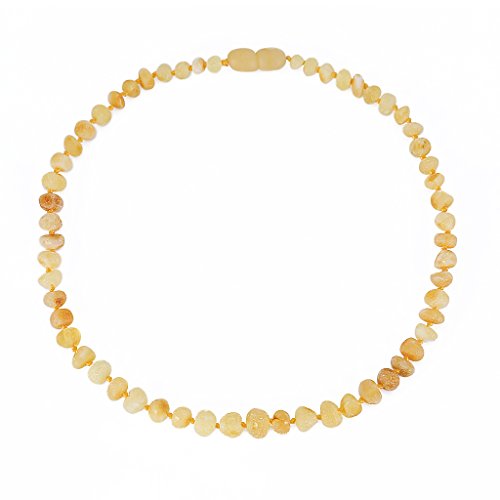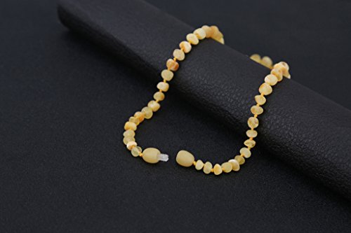 Raw Baltic Amber Teething Necklace for Baby (Unisex)(Butterscotch Raw)(13 Inches) - Baby Gift Sets - Natural Anti Inflammatory Beads.Teething Pain Reduce...