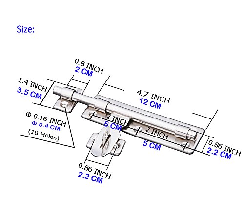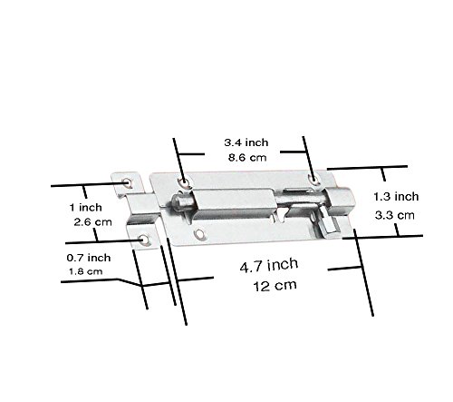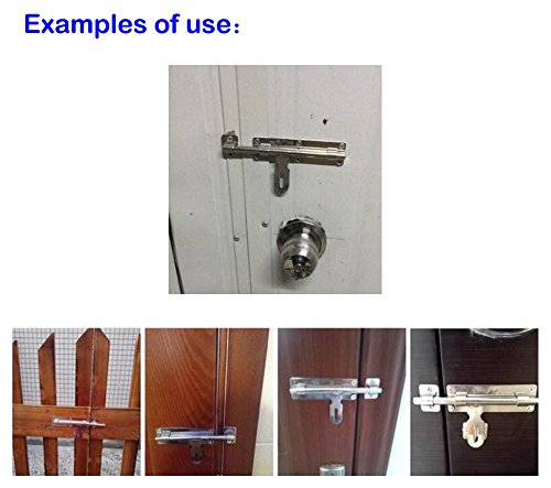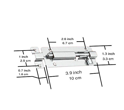 -. Feature : Material : Stainless Steel / Total Size : 16 x 8 cm / 6.3" x 3.15" (L*W);Mounted Hole Diameter : 4mm / 0.16" / Net Weight : 5.36 oz (159 g) / Package Includes: 1 set Door Lock Latch Slide Barrel Bolt + 10 X screws / Complimentary:1 Stainless Steel Adhesive Mirror Wall Mount Hooks