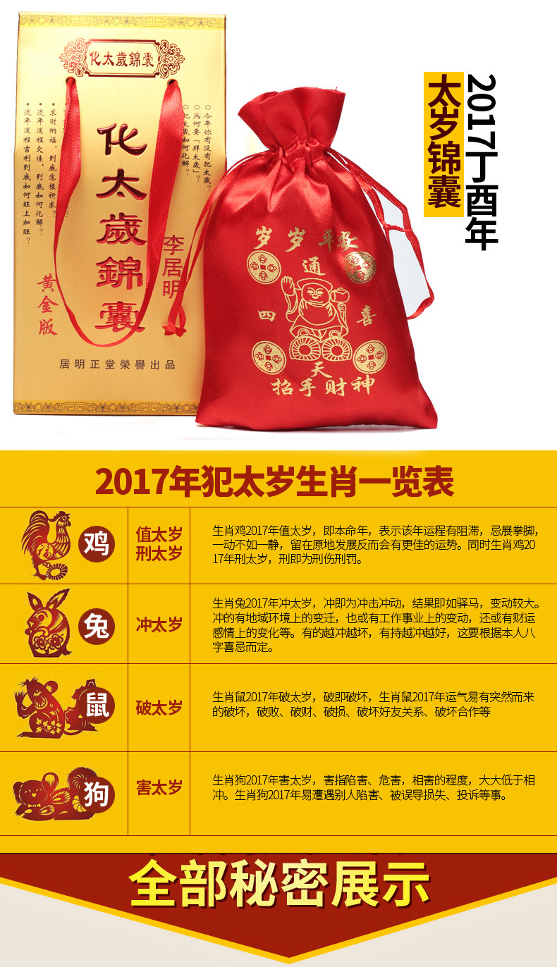开光化太岁锦囊2017年唐杰护岁锦盒生肖鸡兔狗鼠吉祥物本命年护身