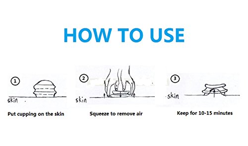 √ EASY USE - The design of the cups makes it easy to grab and push down to create the suction for treatment, you can use it without the help of anyone. FIRST, you can thumb press with one hand, finger press with two hands, or palm press them to remove all the air of cupping message. THEN, left them on the skin surface between 10 to 15 minutes.