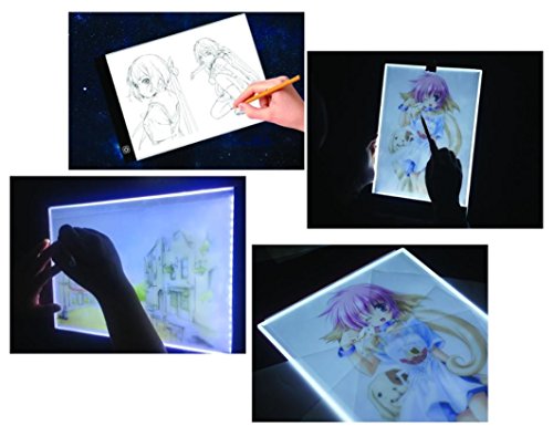 - ULTRA THIN 3.5mm & LESS THAN 11oz – The 9”x13” A4 size easily fits into your back pack or computer case making this the lightest and thinnest portable light table available. Made of super durable acrylic and a heavy duty USB cord that easily resists typical bumps and bangs that can occur, unlike other models where the cords fail after a handful of uses.