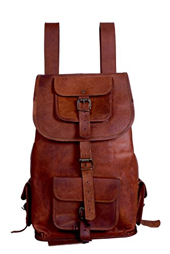 -. Feature : Imported Unisex Leather Backpack / Rucksack / Genuine leather bag made from the finest & soft goat leather / 15x9.5x6.5 (height , breadth) , Has four pockets on the exterior and One big main compartment with fastener at the top. / Heavy Duty Canvas lining & adjustable shouder strap / Suitable for Mountaineer,outdoor sports,hiking,traveling,camping,business trip, school backpack