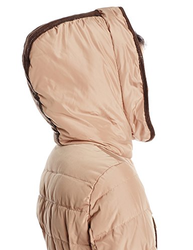 Belted down coat with faux fleece-lined hood and channel quilting
