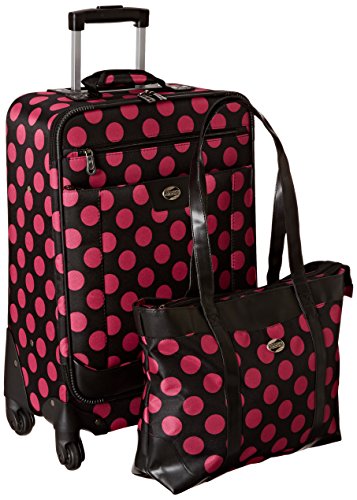 American Tourister Color Your World 2 Two-Piece Set Shopper Spinner 21, Black/Pink Polka Dots, One Size