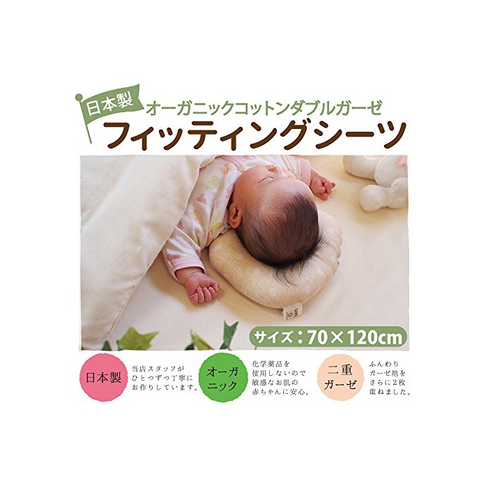 원본상품명: 【日本製】 フィッティングシ?ツ ≪オ?ガニックコットン ダブルガ?ゼ 綿100%≫ 70×120cm No.1100-F