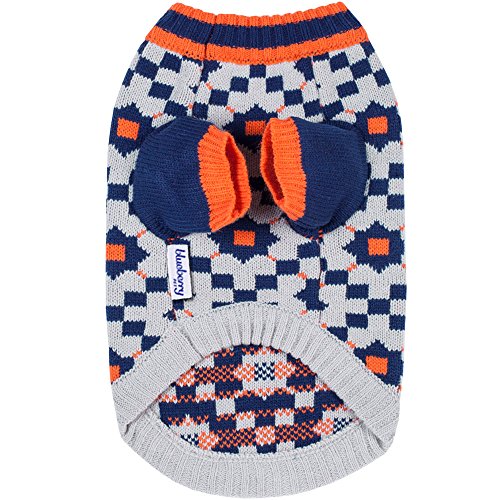 This season, Blueberry Pet works its distinctive styles with innovative ideas, adding a new series of fashion & chic sweaters. This sweater is definitely one of a kind! This lightweight knit sweater is detailed with blue squares accumulating into octagons. And our design used the sparkling orange square to decorate every center of the octagon. What's more about this sweater? It has the classic Blueberry Pet fit for an easy silhouette. Your pets can wear it to almost every occasion you can think of. Because this sweater is designed for head-to-toe brilliance!Feature