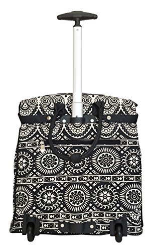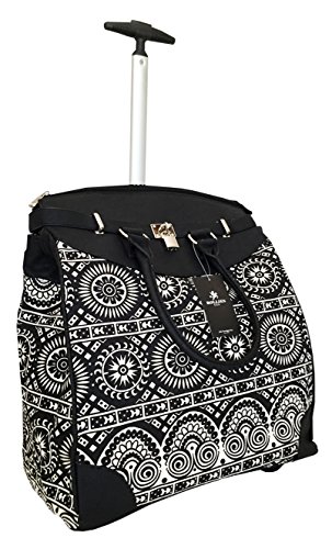 -. Binding : Electronics -. Brand : Trendy Flyer -. Color : Black Beige -. Department : laptop-computer-briefcases -. EAN : 0746839981614 -. Feature : Color: Black and Beige / Padded laptop area can fit laptop 12" wide, 12" tall and 2" thick using securing velcro strap. Padded laptop area can fit laptop 12" wide, 17" tall and 2" thick without using securing velcro strap. / Material: Polyester Canvas with Polyurethane Trim / Tribal Circle / Size: 19" H x 17" L x 9" W / Weight: 4.5 lbs / Additional Info: Height From Top of Handle to Floor with Handle Fully Extended: 35" -. PackageQuantity : 1 -. ProductGroup : PC Accessory -. ProductTypeName : CARRYING_CASE_OR_BAG -. Title : Trendy Flyer Computer/Laptop Rolling Bag 2 Wheel Case Tribal Circle -. UPC : 746839981614