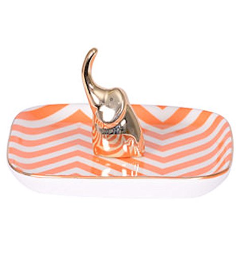 Gold Plated Elephant Orange Ceramic Jewelry Dish Ring Holder