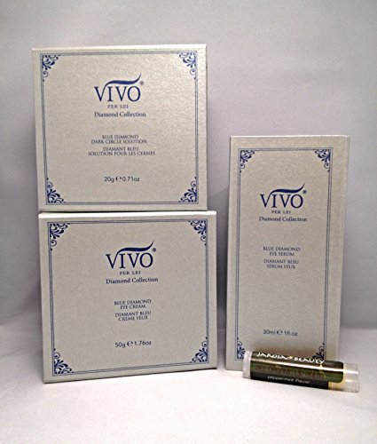 BLUE DIAMOND DARK CIRCLE SOLUTION: This wonderful eye cream immediately diminishes the appearance of dark circles under the eyes. Infused with Vitamin E (Tocopheryl Acetate), Vitamin A (Retinyl Palmitate), Caffeine and Diamond Powder, this light formula delivers an instant radiant look