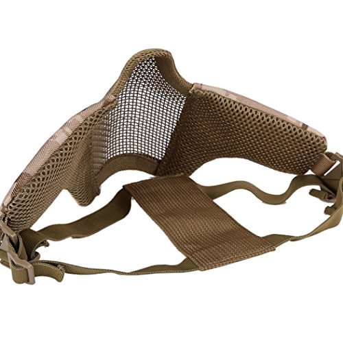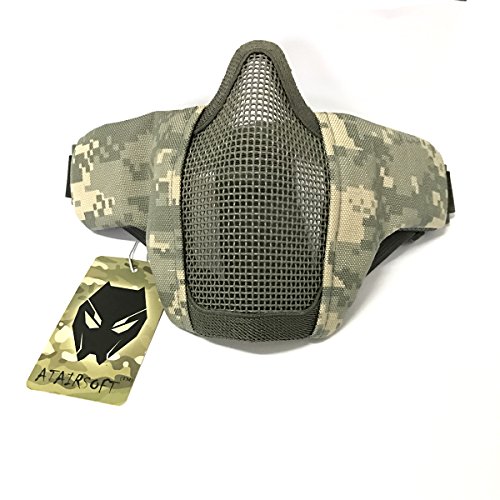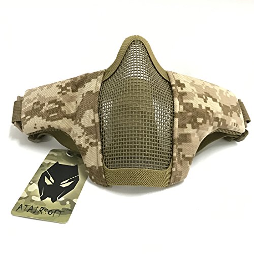 -. Binding : Misc. -. Brand : ATAIRSOFT -. Feature : One Size Fits Most: With two adjustable elastic belt strap half mask fit most people / Lightweight & Folding Mesh Mask Design: Foldable mask makes it easy to carry; Superb air ventilation prevents fogging from the mesh part. / Steel metal mesh face mask with soft padded nylon fabric; Provides covers from the nose to your chin. / Provide air flow and features soft padded nylon fabric on each side of the mask. / Suitable for A Wide Range: Perfect for airsoft, hunting, paintball, shooting and any other outdoor activities. -. Label : ATAIRSOFT -. Manufacturer : ATAIRSOFT -. ProductGroup : Sports -. ProductTypeName : SPORTING_GOODS -. Publisher : ATAIRSOFT -. Studio : ATAIRSOFT -. Title : ATAIRSOFT Adjustable Military Half Face Mesh Mask Tactical Protective Mask