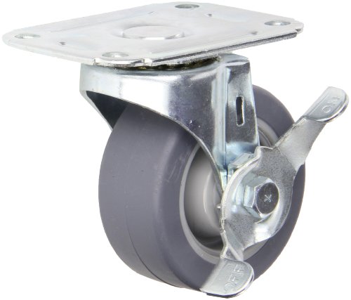 E.R. Wagner Plate Caster, Swivel with Pinch Brake, TPR Rubber on Polyolefin Wheel