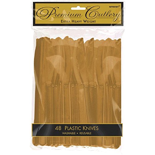 -. Title : Reusable Party Premium Heavy Weight Knives Cutlery, Gold, Pack of 48