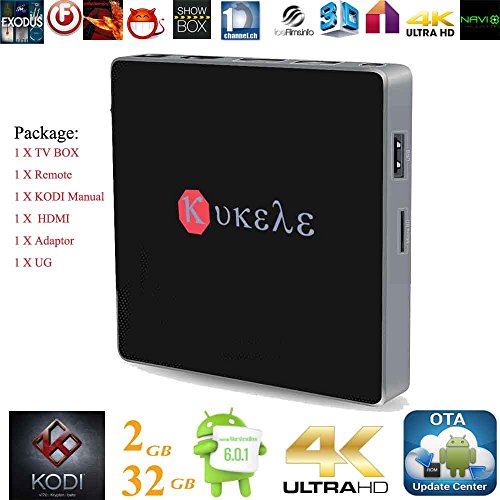 -. Feature : ★ 2017 Strongest & Best OCTA CORE CPU 2GB+32GB (Cutting-Edge Performance) - PLUG & PLAY Unlimited Streaming for FREE - With good internet speed, Enjoy Millions Newly released or old Movies TV Shows, Live Sporting events (Soccer, wrestling, Boxing, fighting, Football, basketball, golf, baseball etc), NEWS, ADULTS, KIDS Contents, Live Channels from all over the world and MANY MORE... / ★ Fully UNLOCKED Smart OTT Media player - NO ANY MONTHLY EXTRA PAYMENT or HIDDEN FEES - Unlike other media box or stick, our Kukele streaming device (all models) are Original designed & free of restrictions. Turn your TV instantly into SMART TV, enable you to: Internet surfing / Watch countless Movies / Shows / Live TV / Play media from your PC or NAS / Play games / Access social media account / Read news / Edit office chatting and MUCH MORE ... / ★ UNEQUALABLE FREE WARRANTY & UNMATCHABLE CUSTOMER SUPPORT SERVICE - INSTANT & ALL TIME SUPPORTS - CALL BACK SUPPORTED - Response mostly within 9 hours(7 days a week) - Comes Automatically Covered when you place your order no matter what happens to it. Package COME WITH our Specialized engineer written HOW-TO Instruction on HOW TO use the item, HOW-TO troubleshoot etc. / ★ AUTO-UPDATING & EVER-INCREASING Streaming - Software (CUSTOM ENHANCED VERSION OF XBMC KODI INSTALLED )under constantly maintaining & improving, then automatically update to the device so that you will never get behind! - Largest streaming library, kukele smart device's streaming library under constantly growing with endless & unlimited content! / ★ CRAFTSMANSHIP - DO NOT MISS THIS All-in-One Entertainment Media System! little Gadget but Powerful Device! - Will Chnage Your life, Fully Support 4K, 1080P and 3D HD Streaming, Plug-n-Play Ready to play countless Movies / TV series / Live TV / Live Sports / kids / adults WITHOUT ANY HIDDEN FEE! UNLIKE others which need hours of settings, the Unlocked KUKELE ONLY NEED 3 SIMPLE STEPS : Step1: Plug HDMI & POWER → Step2: Connect the Internet (WIFI/Wired) → Step3: Sit down, have fun!