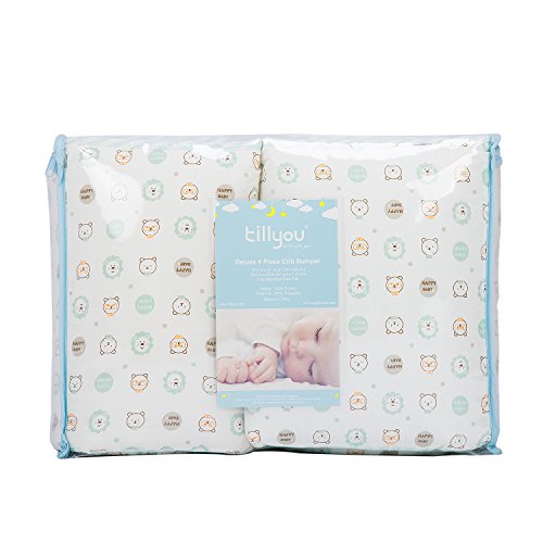 (TILLYOU)/Nursery/Bedding/DIRECT FROM USA/TILLYOU Padded Baby Crib Bumper Pads/Bear Lion Printed Crib Liner, 100% Woven Cotton and Breath...