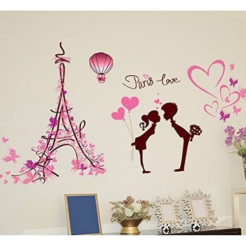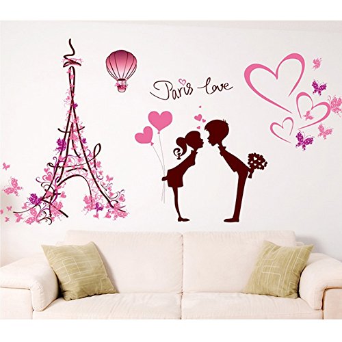 -. Title : Heart Shapes Eiffel Tower Lovers Butterflies Wall Decal Home Sticker PVC Murals Vinyl Paper House Decoration Wallpaper Living Room Bedroom Art Picture DIY for Children Teen Senior Adult Nursery Baby