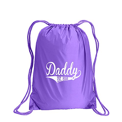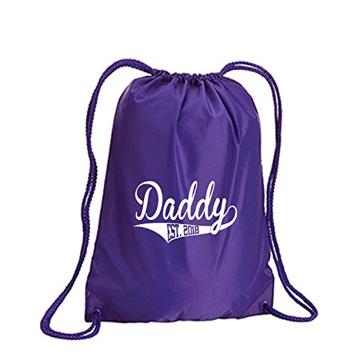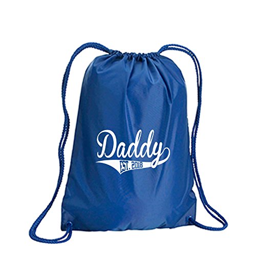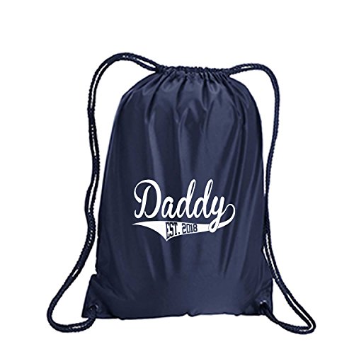 Product Description This durable and stylish nylon tote features "Daddy Est.2018" on a cinch pack tote with white ink. Bag comes in small and large sizes and is made of a durable 210 Denier nylon and has color-matched draw cords. Printed in the USA on an imported bag. 0