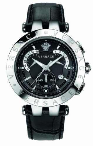-. Title : VERSACE Men's 23C99D008 S009 "V-Race" Stainless Steel Watch with Leather Band