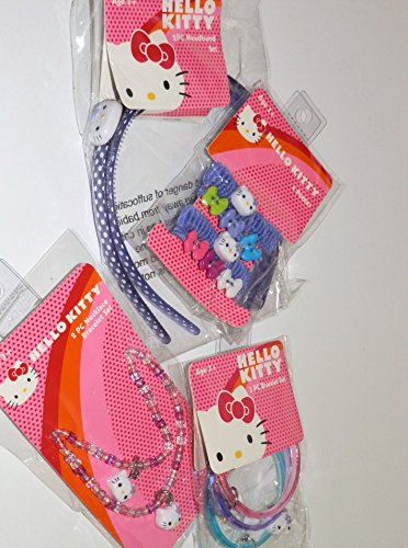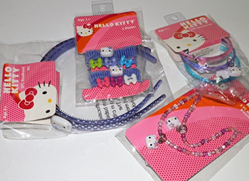 Hello Kitty Bundle - Lot 10 Pieces Total - Purple Theme 2 Headbands, 4 Hairbands (also called Ponies ) 3 Bracelets and 1 Necklace Brand : Unknown MPN(PartNumber) : Unkown EAN : 0721676082977 Package Dimensions(LxWxH) : 17x15x7cm ; 91 g