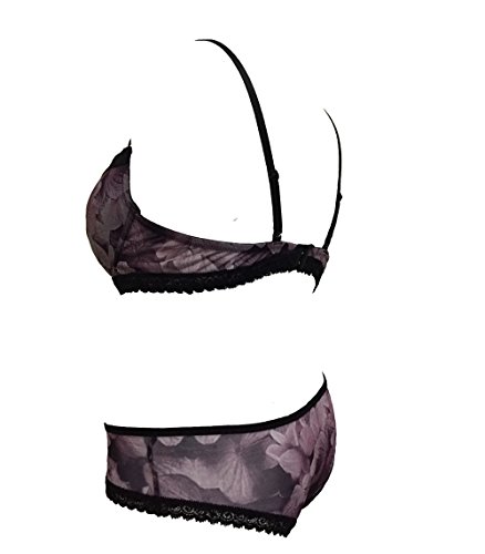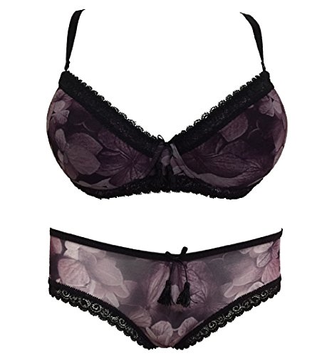 Elegant Flower printed mesh fabric, with lace in cup edge and underbust; with match brief set.